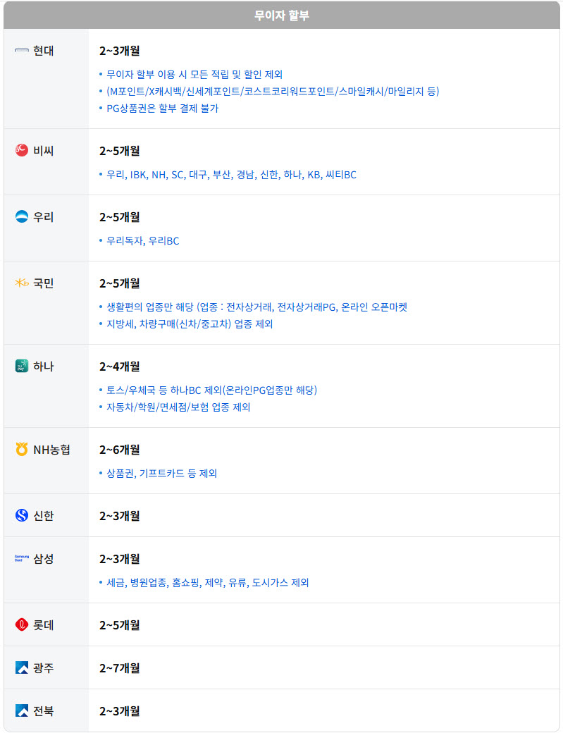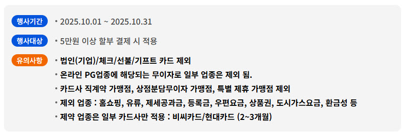 [안내] 25년 10월 카드 무이자 할부 안내