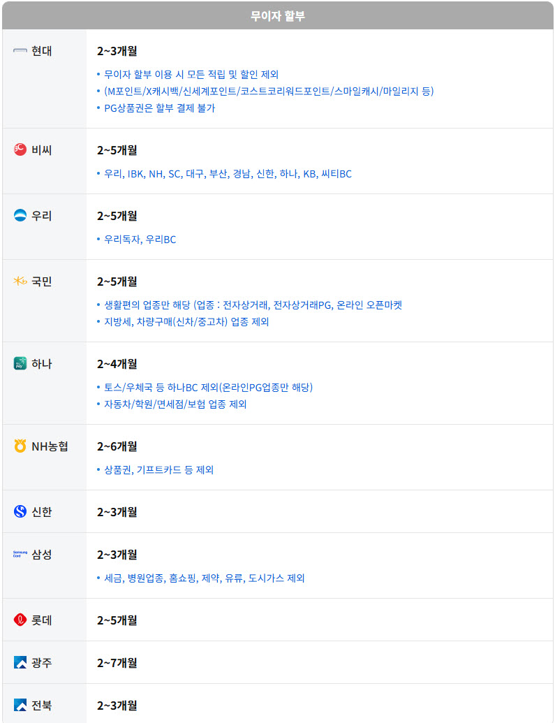 [안내] 25년 11월 카드 무이자 할부 안내