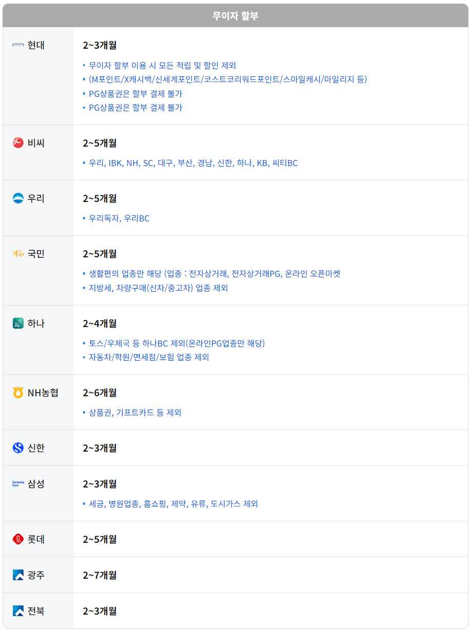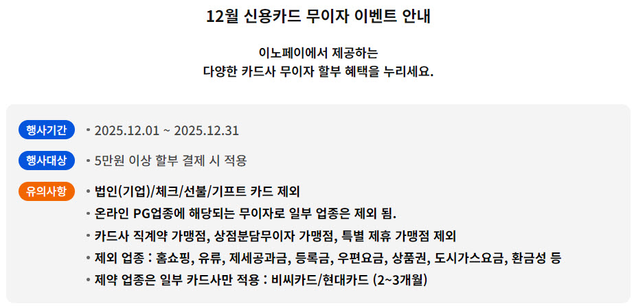 행사내용 : 5만원 이상 결제시 무이자 할부