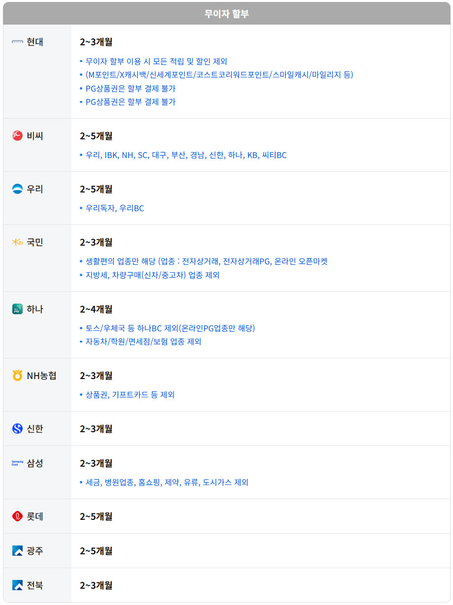 행사내용 : 5만원 이상 결제시 무이자 할부