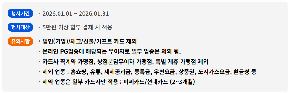 [안내] 26년 1월 카드 무이자 할부 안내