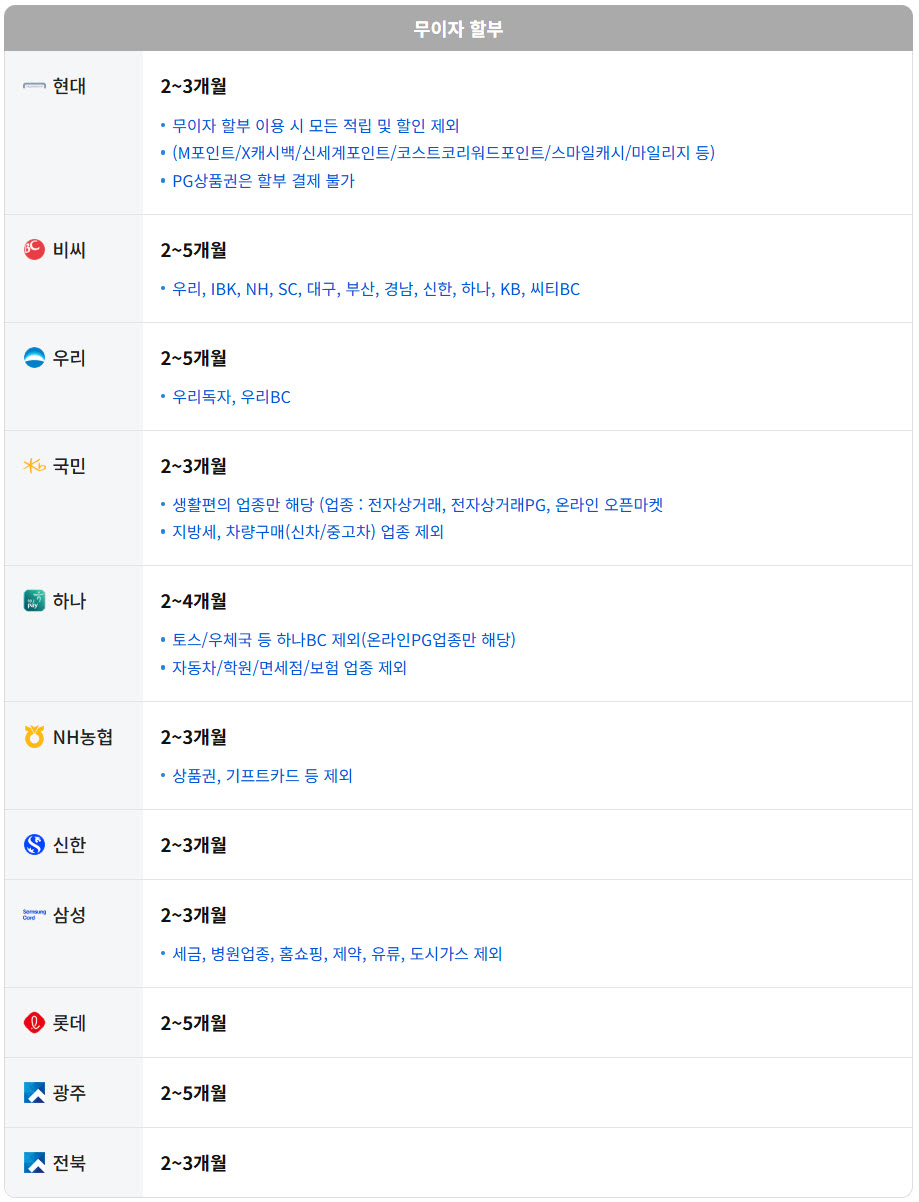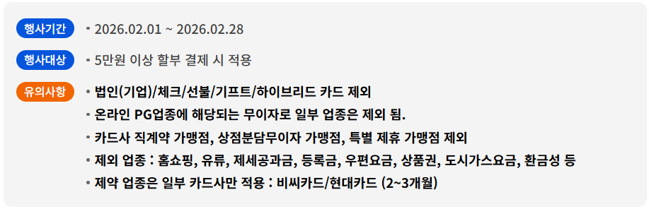 [안내] 26년 2월 카드 무이자 할부 안내